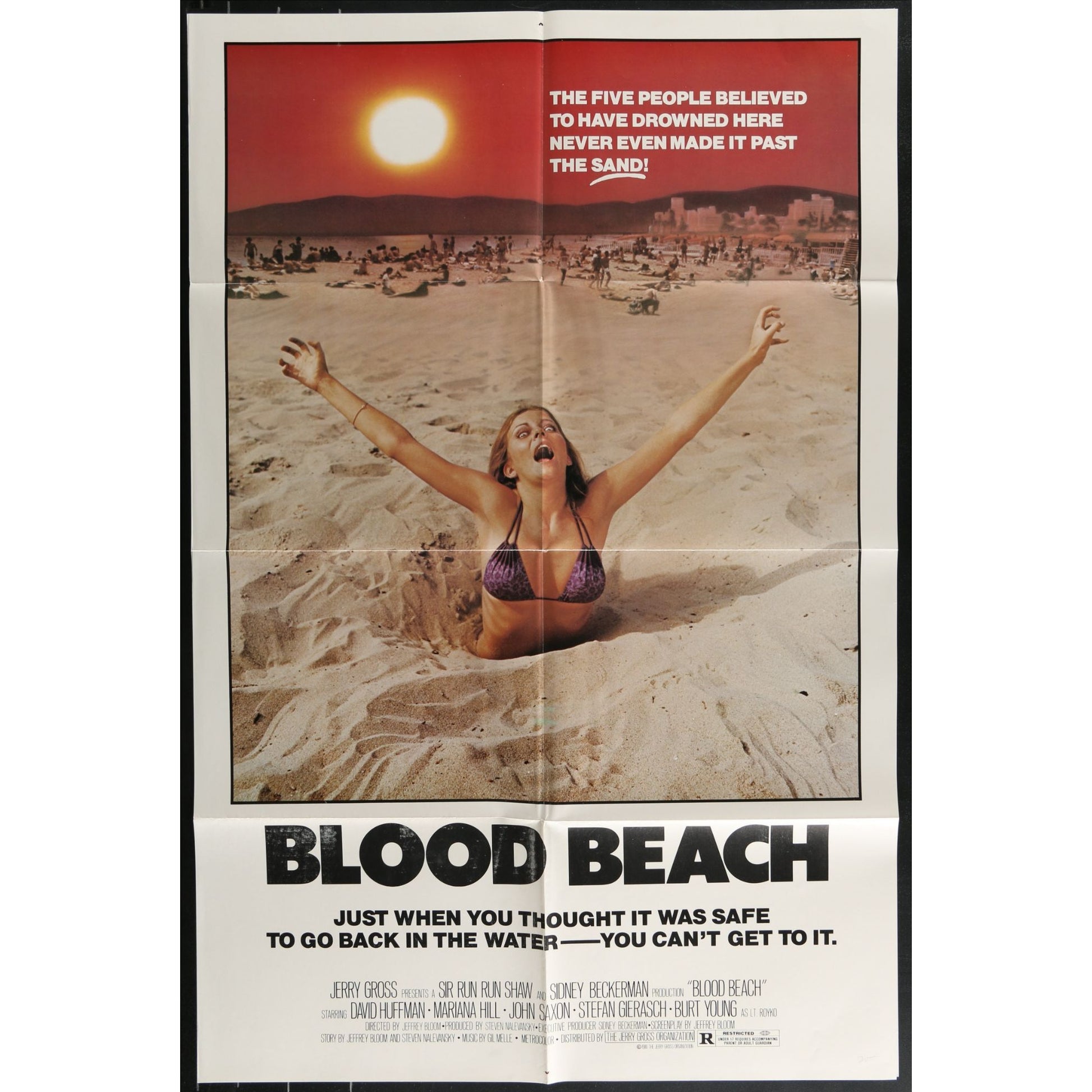*Blood Beach* (1980) is a horror film directed by Jeffrey Bloom, set in Santa Monica where beachgoers begin disappearing mysteriously—dragged beneath the sand by an unseen creature. Starring David Huffman, Marianna Hill, and featuring John Saxon as a skeptical police captain, the film blends police procedural with monster horror. Marketed with the tagline "Just when you thought it was safe to go back in the water—you can't get to it," the film gained a cult following for its unique premise and eerie atmosphere.
