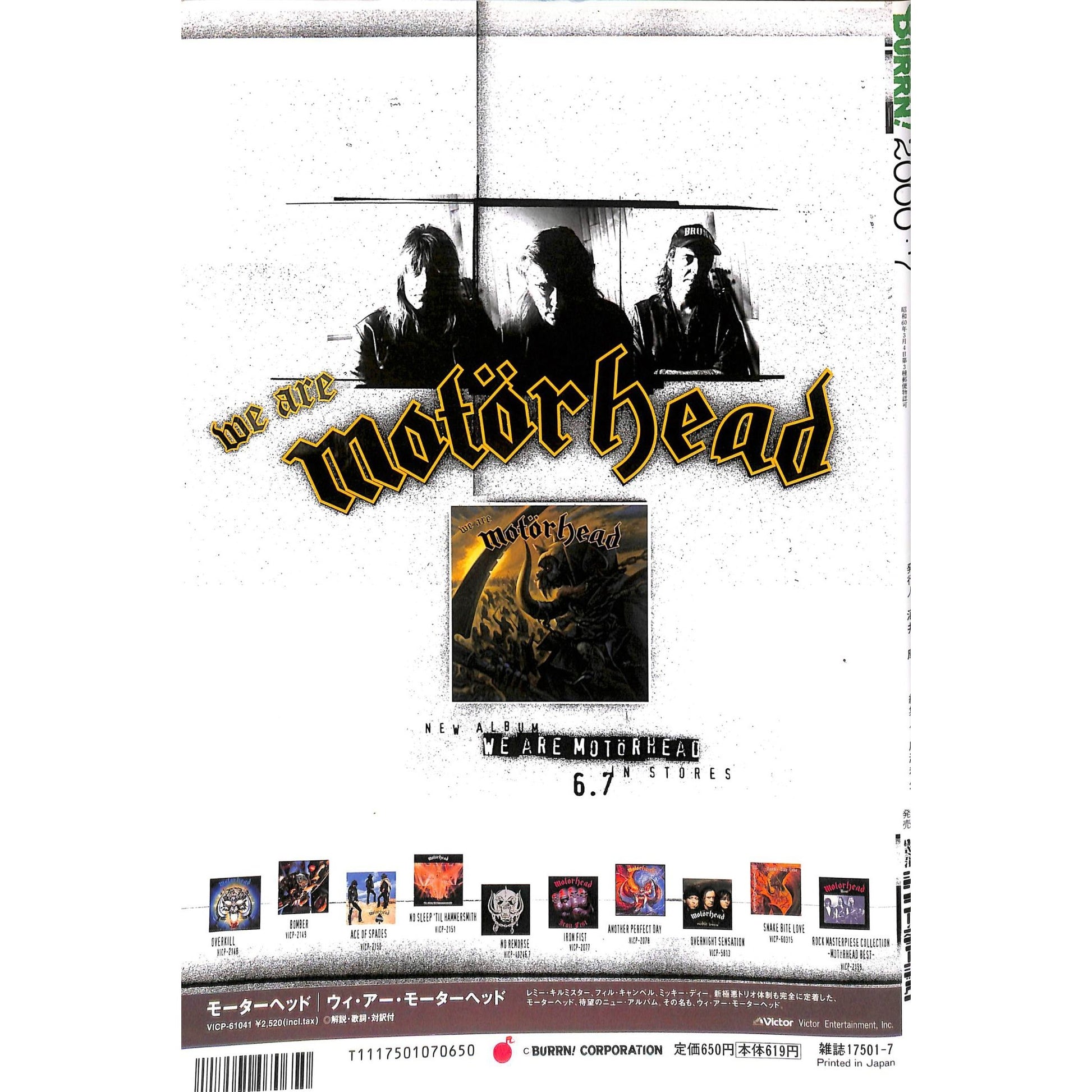 Burrn! Magazine Issue #7 July 2000 Nikki Sixx Cover Heavy Metal Japan