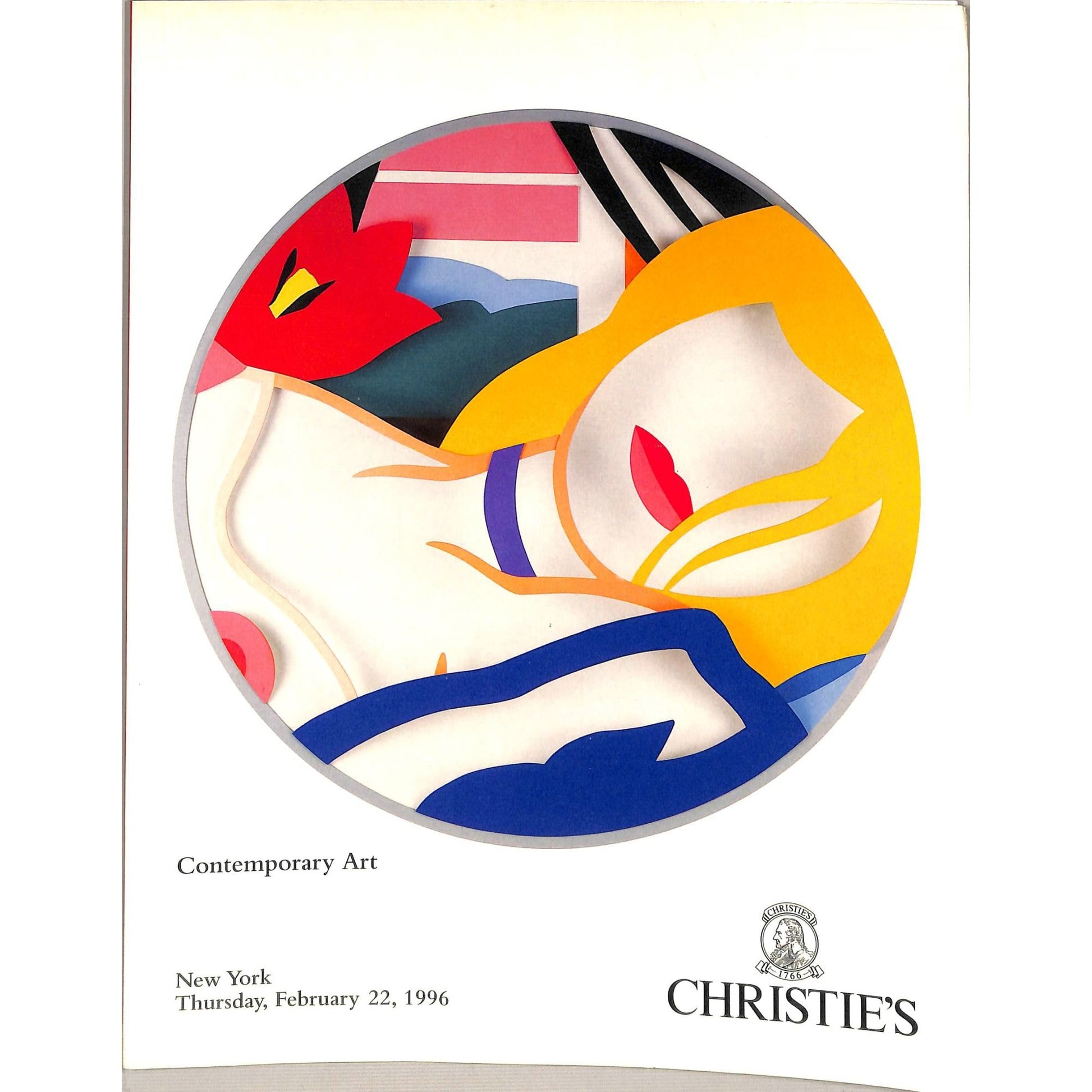 Christie's Contemporary Art Auction Catalog from February 22, 1996, featuring a bright, colorful cover design with abstract, modern art imagery. Includes details about the event held in New York, with information on featured contemporary artworks.