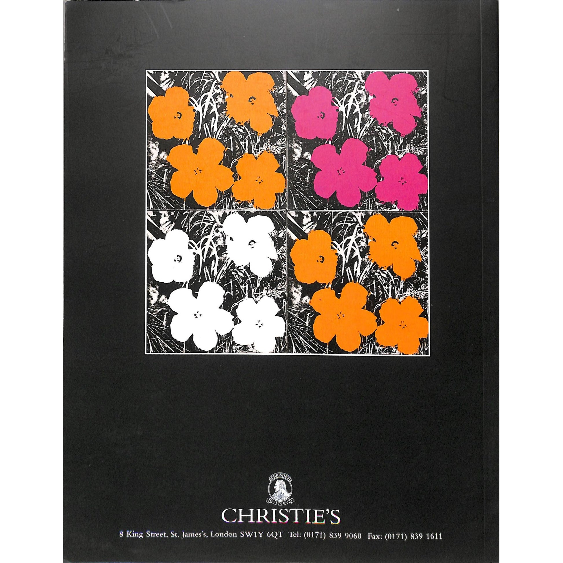 Christie's London Contemporary Art Auction catalog for Thursday, May 29, 1997. Features a vibrant cover design with abstract artwork and back cover showcasing Andy Warhol's 'Flowers' print. Contains auction listings, artwork descriptions, and artist details. A valuable reference for art collectors and enthusiasts.