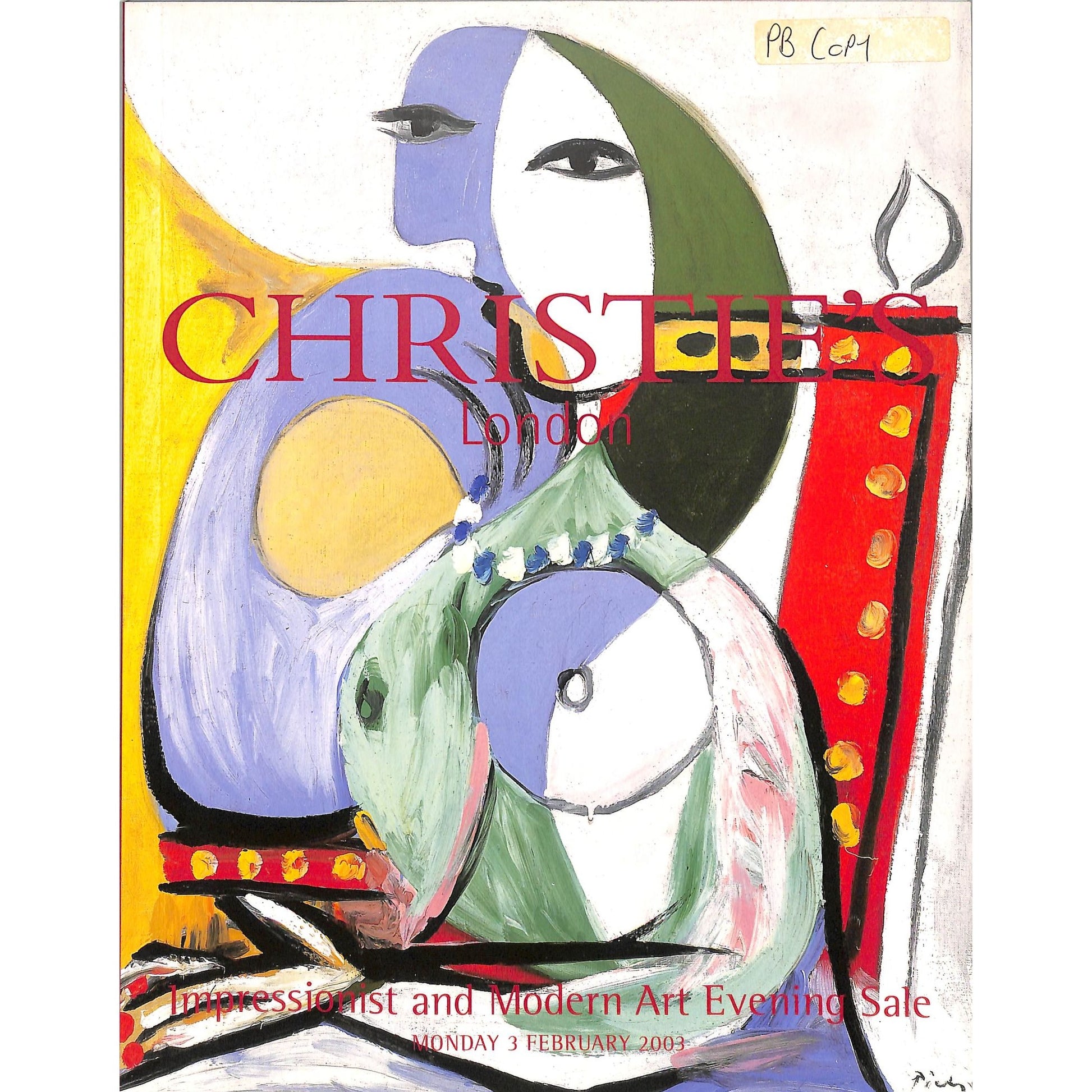 Christie's Impressionist and Modern Art Auction Catalog from February 3, 2003. Hardcover catalog featuring iconic works by renowned artists. Includes details on art presented during the evening sale. A valuable resource for collectors and enthusiasts of 20th-century art movements.