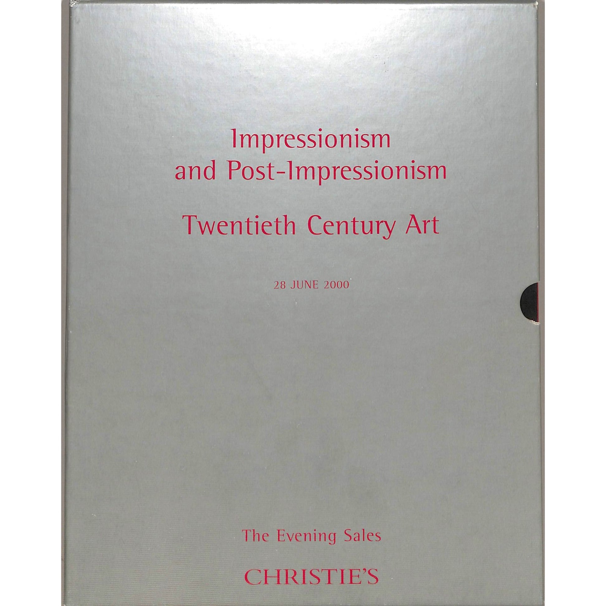 Christie's auction catalog featuring Impressionist and Post-Impressionist Twentieth Century Art, dated June 28, 2000. Includes details of The Evening Sales. Presented in a silver slipcase with red text on both sides. Ideal for collectors and those interested in twentieth-century art auctions.