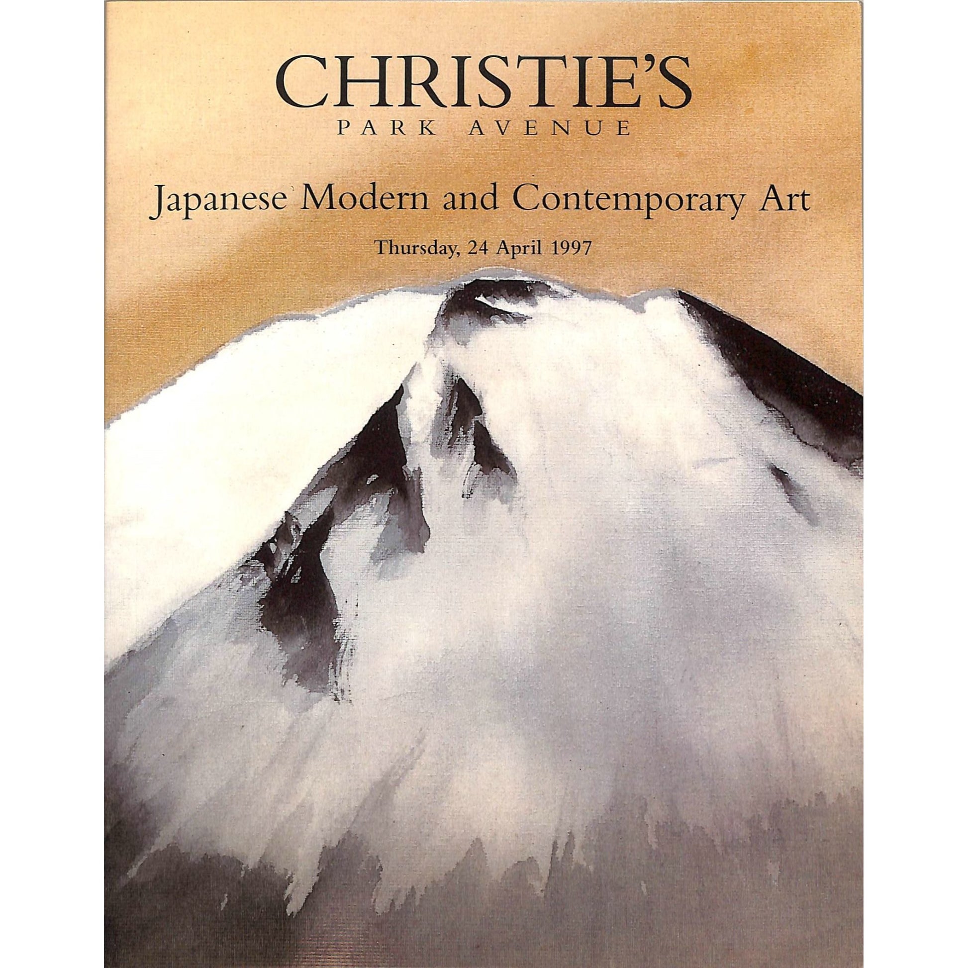 Christie's auction catalog titled "Japanese Modern and Contemporary Art," dated 24 April 1997, with cover featuring artwork of Mount Fuji. Published for the New York Park Avenue location, the catalog includes detailed descriptions of Japanese modern and contemporary art pieces auctioned on the specified date. Condition and page count are not specified.