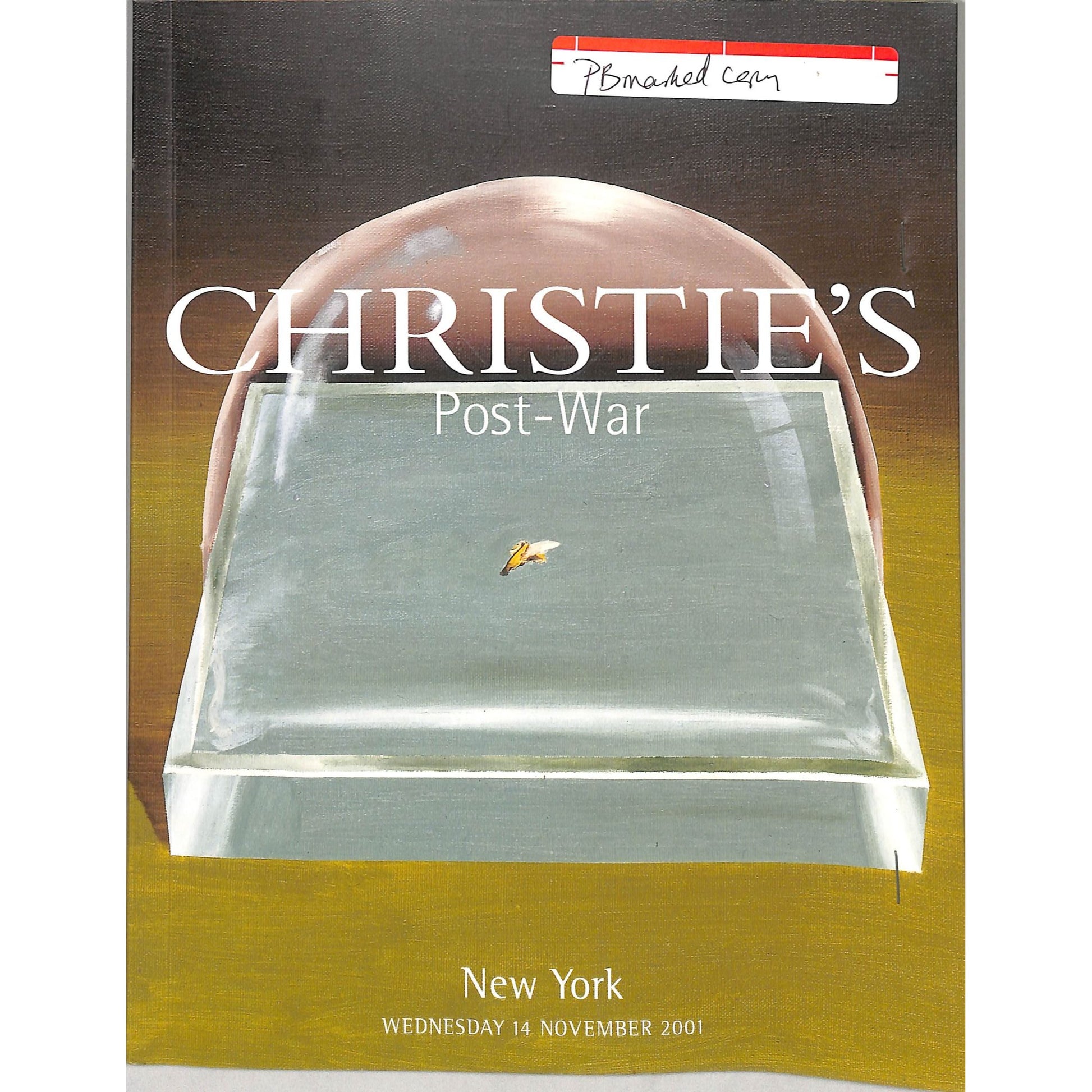 Christie's Post-War Auction Catalog from November 14, 2001, held in New York. The catalog features detailed records of art and items included in this prominent auction. Includes front cover depicting an abstract composition and back cover artwork. Preserved condition suitable for collectors and historians.