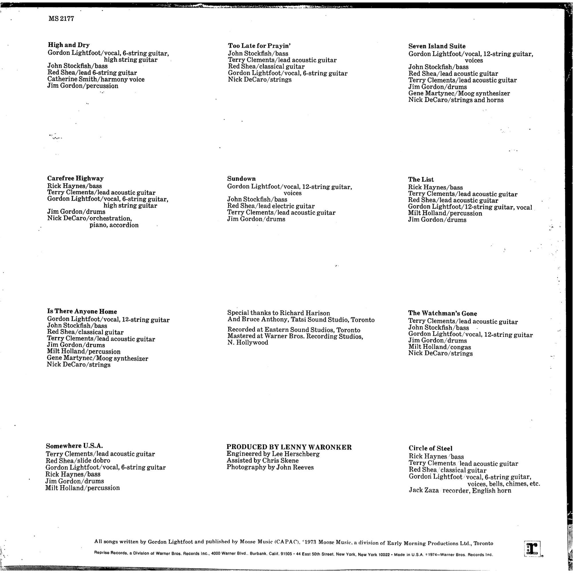 Gordon Lightfoot - Sundown (1974) Promo Vinyl LP MS 2177