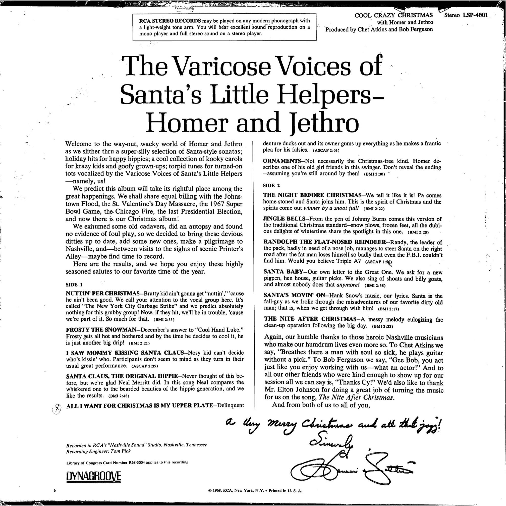 Homer & Jethro - A Cool Crazy Christmas (1968) Vinyl Record LSP 4001