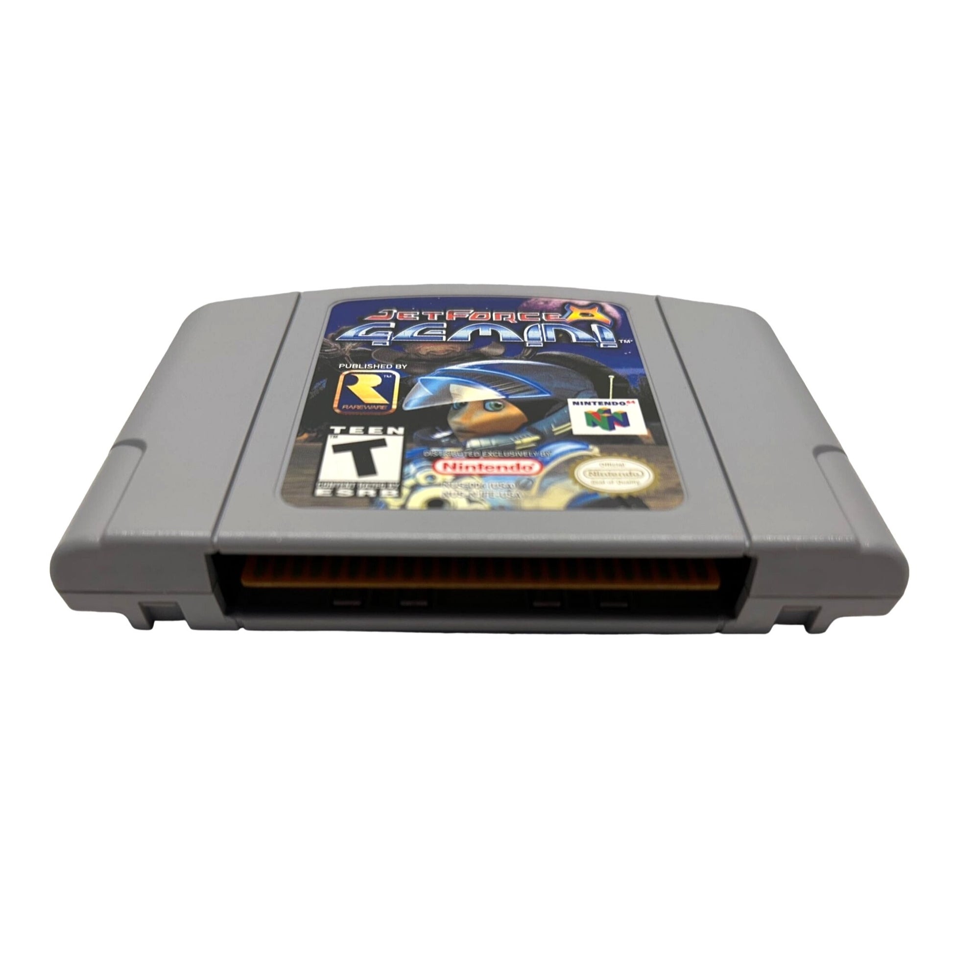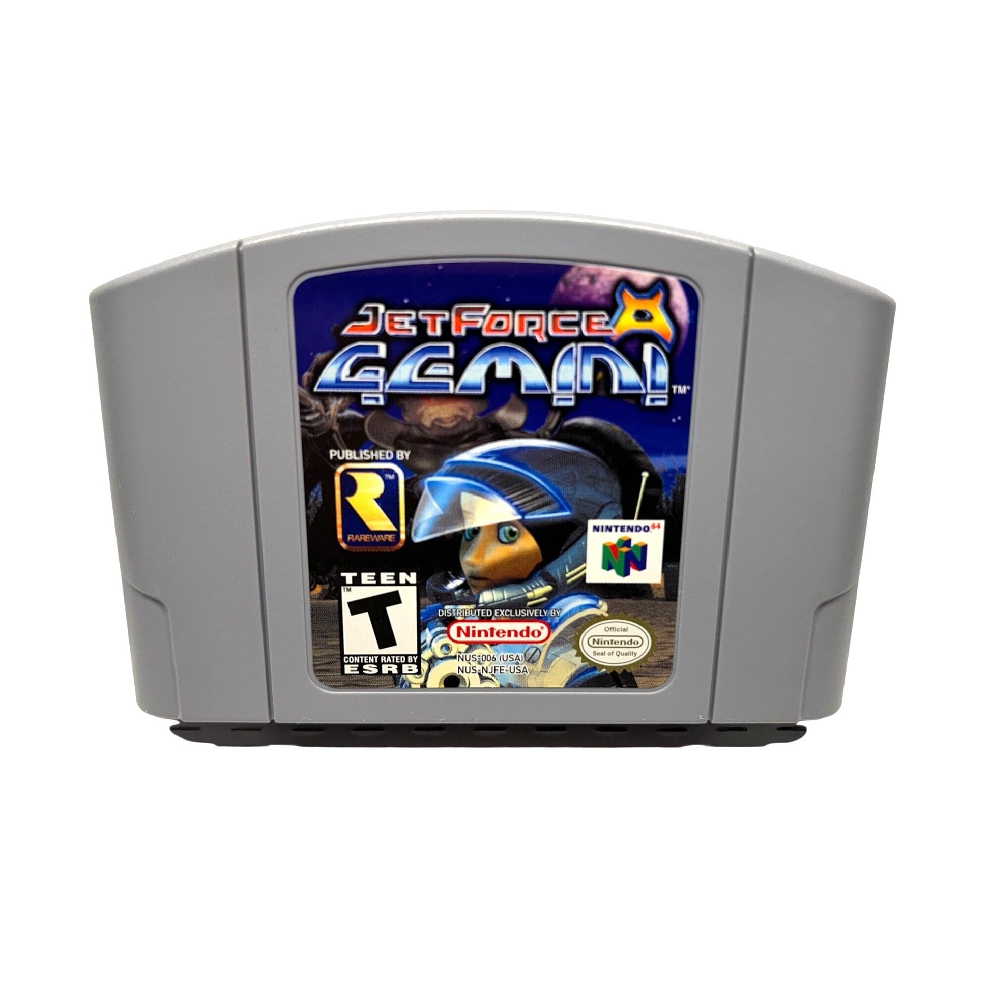"Jet Force Gemini" for the Nintendo 64, released in 1999 and developed by Rare, is a third-person shooter that follows the intergalactic adventures of the Juno siblings—Vela, Lupus, and Jet. Players embark on a mission to save the universe from the insectoid menace of the tyrant Mizar. Known for its expansive worlds, diverse gameplay mechanics, and cooperative multiplayer mode, the game combines action, exploration, and platforming elements. "Jet Force Gemini" received praise for its impressive graphics, engaging gameplay, and memorable characters, making it a notable title in the Nintendo 64 library and a beloved classic among fans of the console.