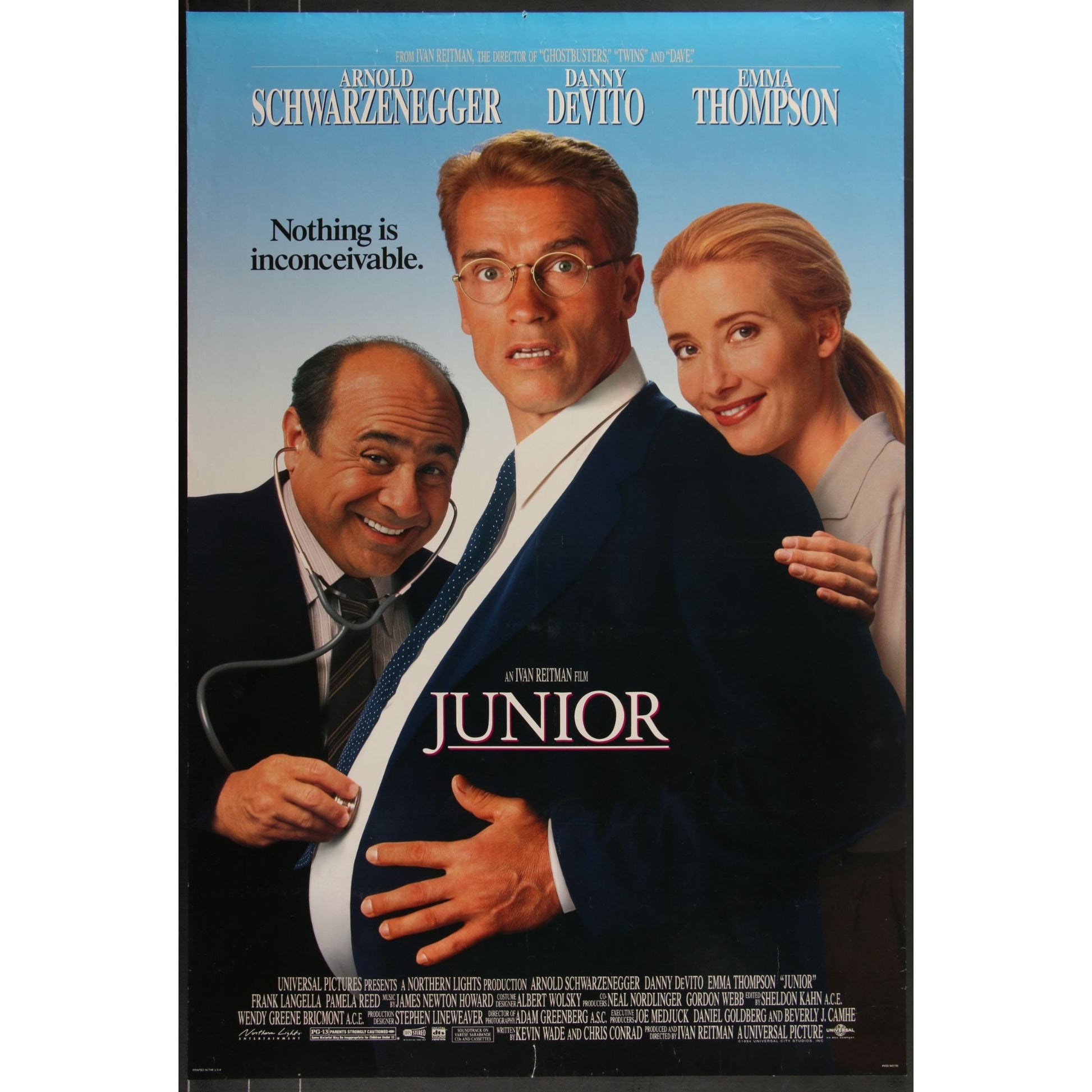 *Junior* (1994) is a comedy where Arnold Schwarzenegger plays Dr. Alex Hesse, a scientist who undergoes an experimental pregnancy as part of a medical study to carry a baby to term. Partnering with his colleague, Dr. Larry Arbogast (Danny DeVito), the two navigate the physical and emotional challenges of pregnancy, leading to comedic and heartwarming moments. The film is a humorous departure from Schwarzenegger's typical action roles, showcasing his comedic timing as he embraces the absurdity of the situation.