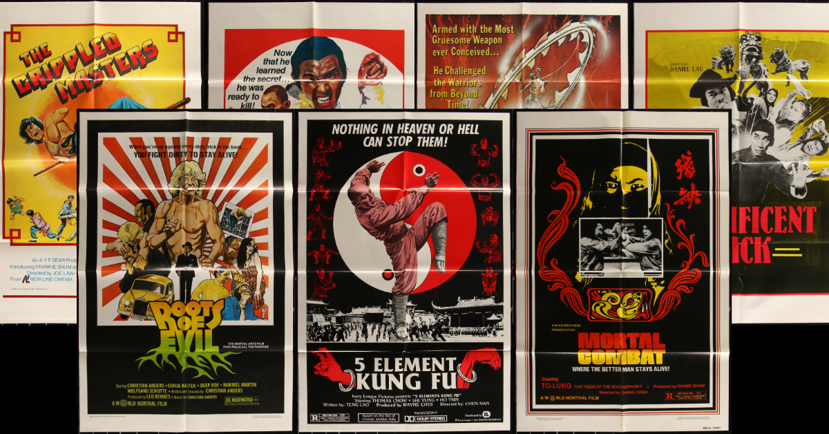 A lot of 21 folded kung fu one-sheets. Note that the items in this lot are mostly from the 1970s.