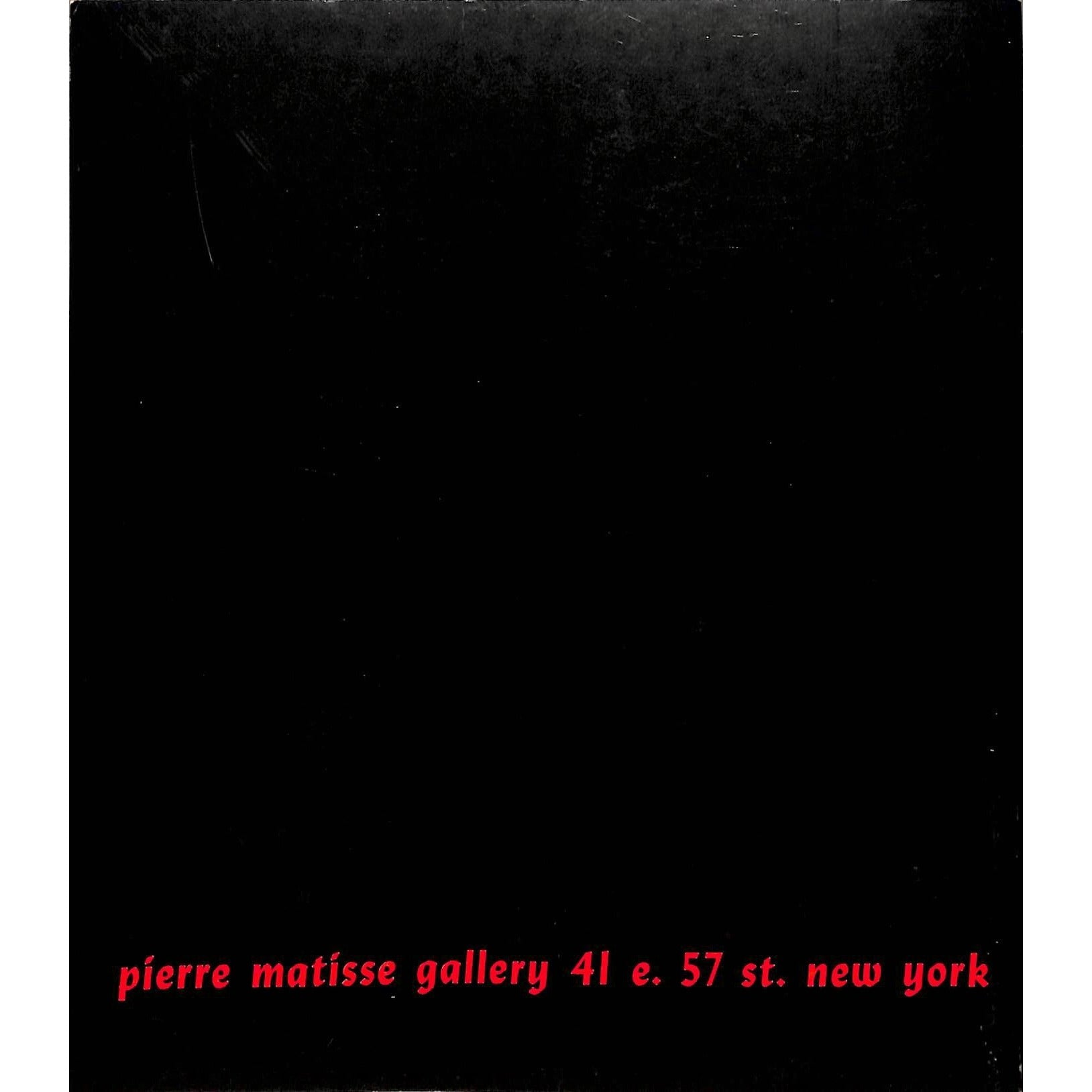Art catalog for the exhibition 'Four Spanish Painters: Millares, Canogar, Rivera, Saura,' held at the Pierre Matisse Gallery, New York, from March 15 to April 9, 1960. Features a black cover with red and white type, showcasing the gallery’s details and the artists associated with the exhibit. Likely includes artist biographies, photographs of works, and exhibition details.