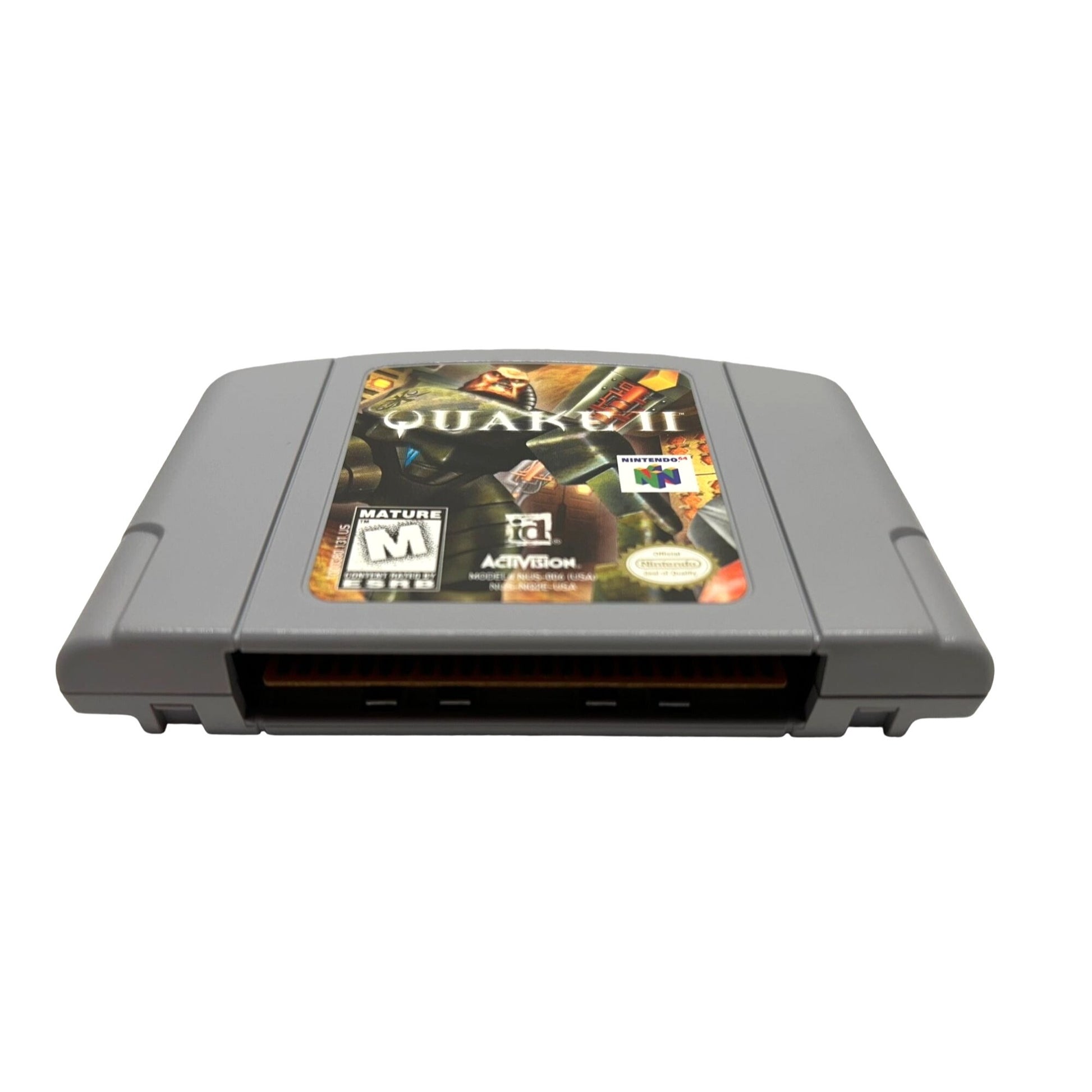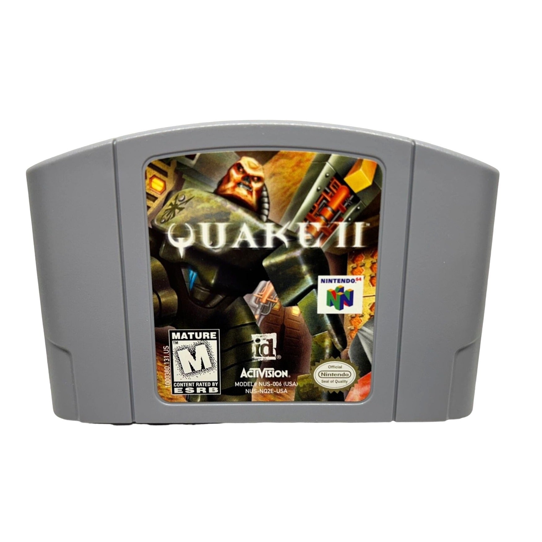 "Quake II" for the Nintendo 64 is an intense first-person shooter developed by id Software and released in 1999. Ported from the PC version, the game thrusts players into a futuristic military conflict against a cybernetic alien race known as the Strogg. As the lone marine, players navigate through hostile environments, battling a relentless onslaught of Strogg forces. Praised for its fast-paced action, atmospheric graphics, and engaging multiplayer mode, "Quake II" on the Nintendo 64 delivered an adrenaline-pumping experience, showcasing the console's capabilities for immersive FPS gameplay during its time. The game's challenging single-player campaign and competitive multiplayer matches contributed to its reputation as a standout title in the first-person shooter genre on the Nintendo 64 platform.