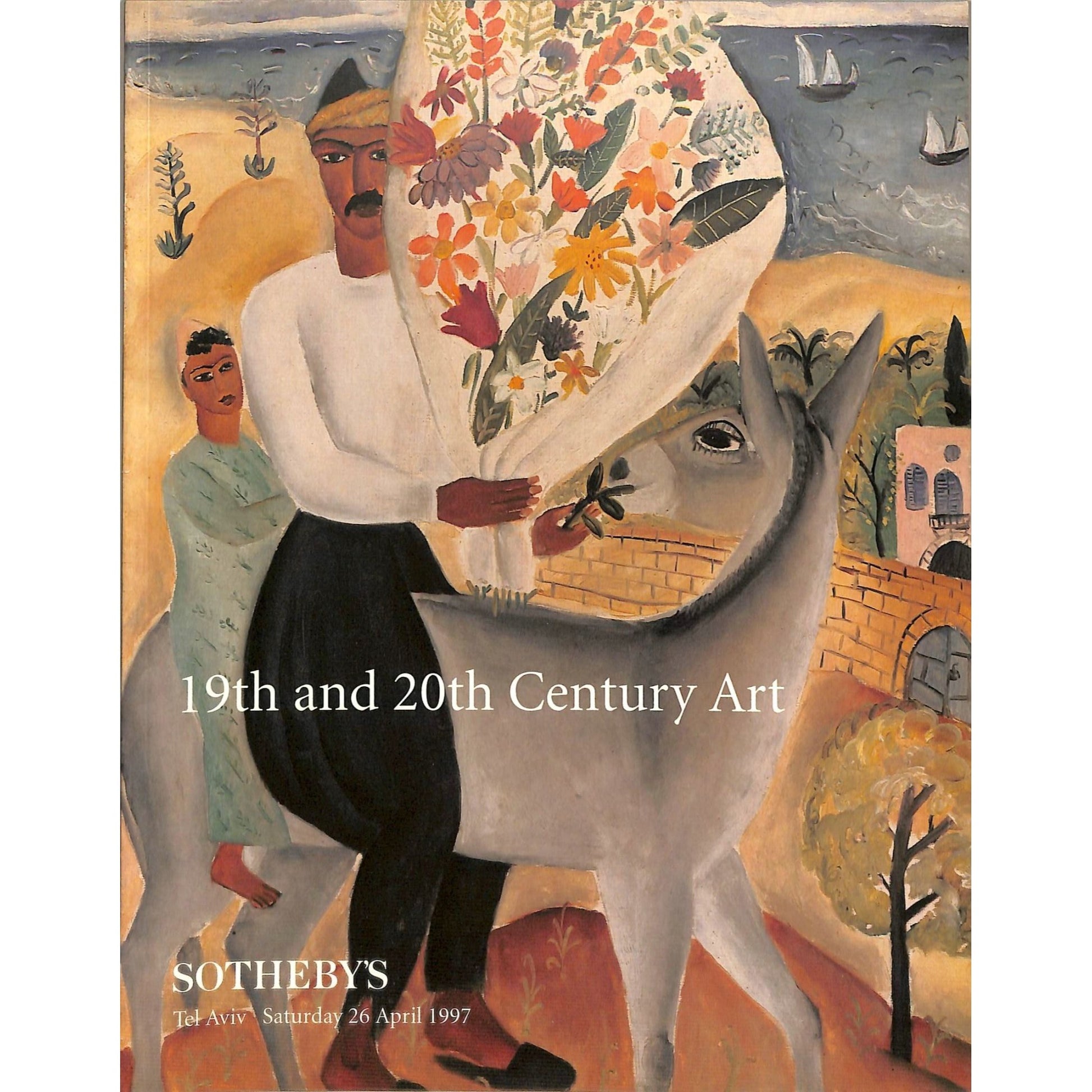 Sotheby's auction catalog for 19th and 20th Century Art held on April 26, 1997. Features detailed information, images, and descriptions of artworks offered in the sale. The catalog includes works from notable artists of the 19th and 20th centuries. The cover showcases vibrant illustrations relevant to the auction theme. Standard wear might be present due to age.
