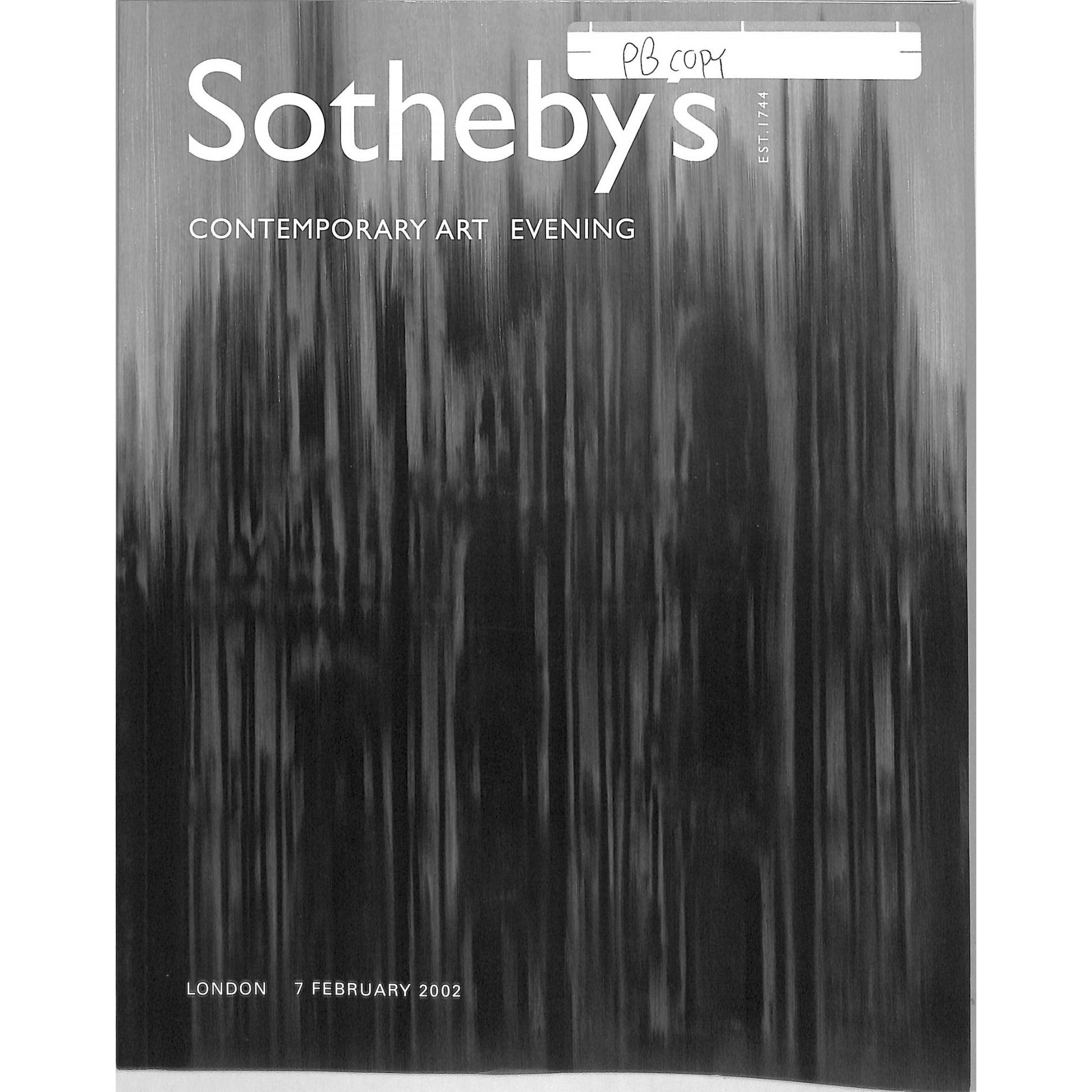 A Sotheby's Contemporary Art Evening auction catalog from February 7, 2002, held in London. The catalog features artworks, artist details, and estimates relevant to the evening sale. A professionally curated resource for collectors and historians seeking insights into contemporary art market trends from that time period.