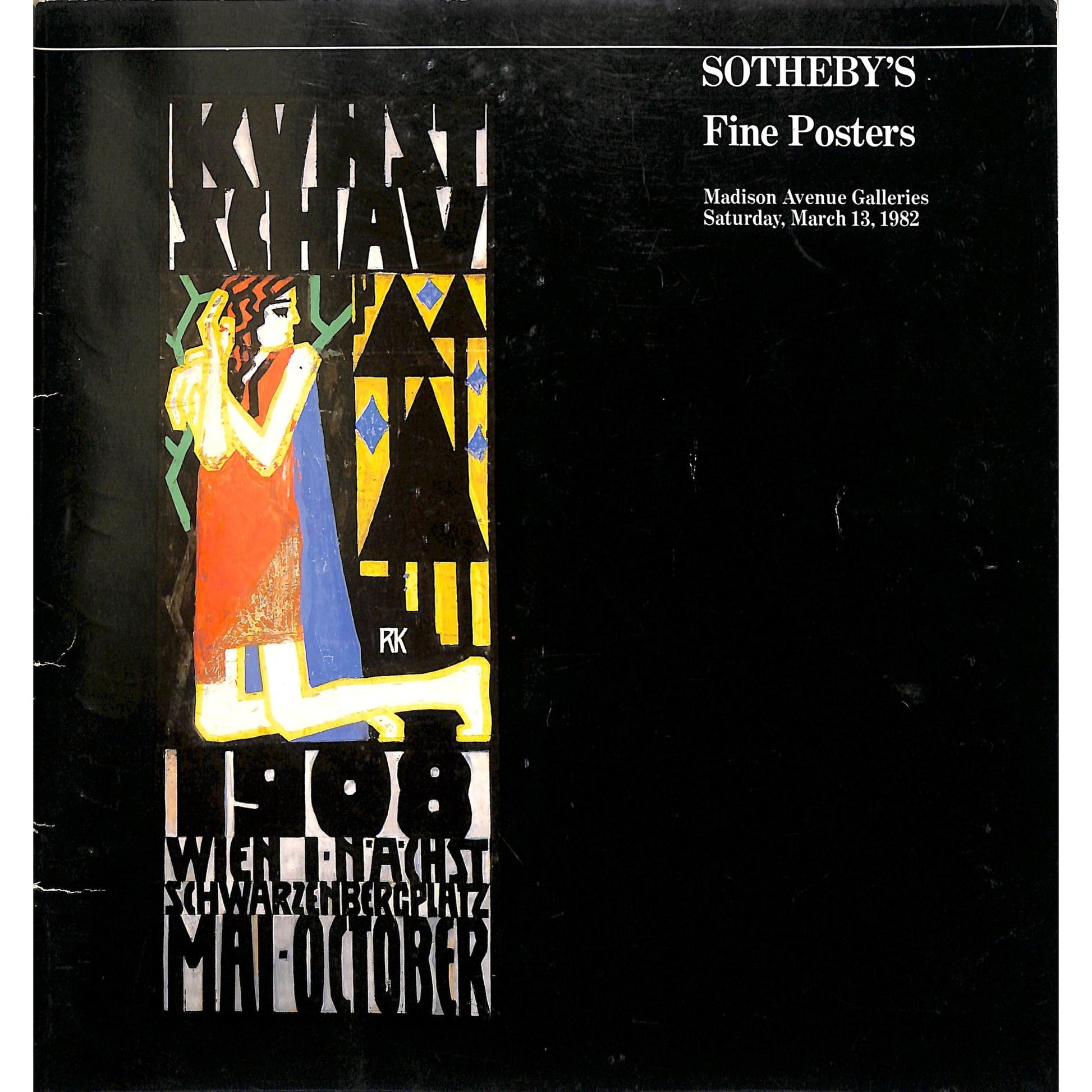 Sotheby's auction catalog for the "Fine Posters" sale held on March 13, 1982, at their Madison Avenue Galleries. The catalog features illustrated content, including poster art from various periods and artists, along with detailed descriptions for each. The cover includes a striking design, and the condition shows signs of use typical of its age, with visible surface wear.