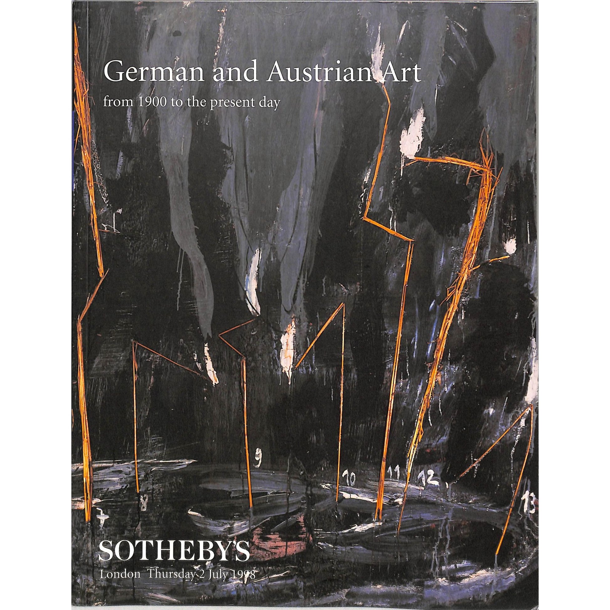 Sotheby’s auction catalog for German and Austrian art, dated July 2, 1998. Covering artworks from 1900 to the present day, this catalog provides detailed information about the works and artists featured in the auction held in London. Includes illustrations and text with auction details. The catalog is in used condition and may show signs of wear.