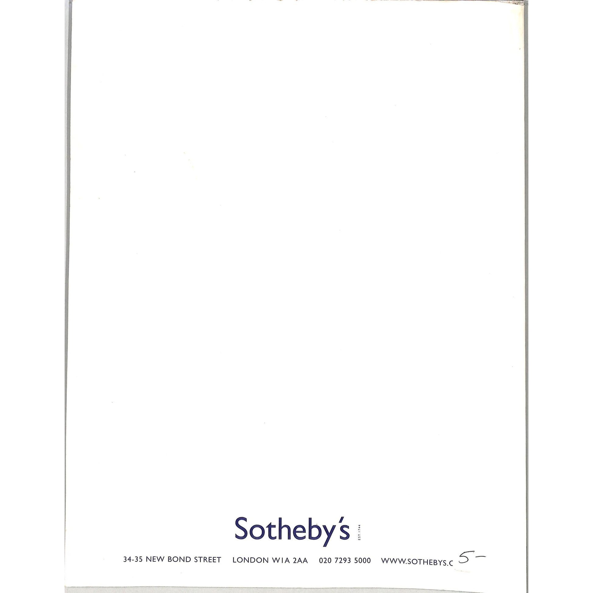 Sotheby’s Impressionist and Modern Art Evening Sale auction catalog, dated February 5, 2002. The catalog includes detailed artwork listings, artist information, and auction details. Published in London, the cover design features a stylized artwork image, indicative of the genre. Located at 34-35 New Bond Street, it is marked with a £5 price tag on the back.
