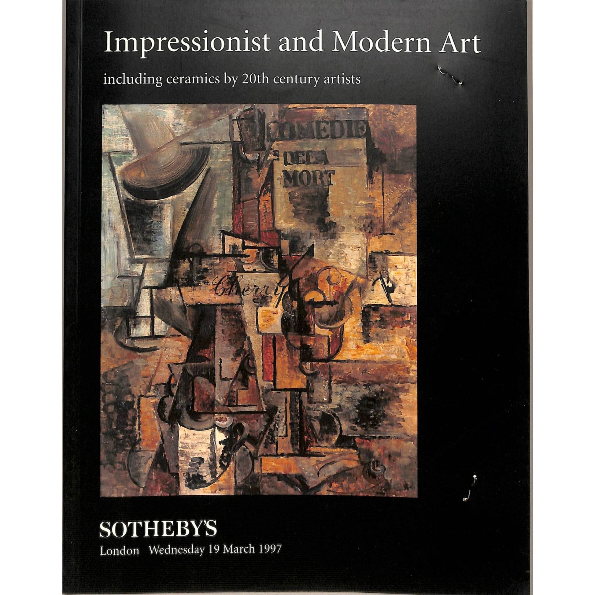 Sotheby's auction catalog for the Impressionist and Modern Art sale held on March 19, 1997. The catalog includes illustrated listings of artworks, featuring ceramics by prominent 20th-century artists. In good condition, it provides detailed auction information, artwork descriptions, and high-quality images. Published by Sotheby's.