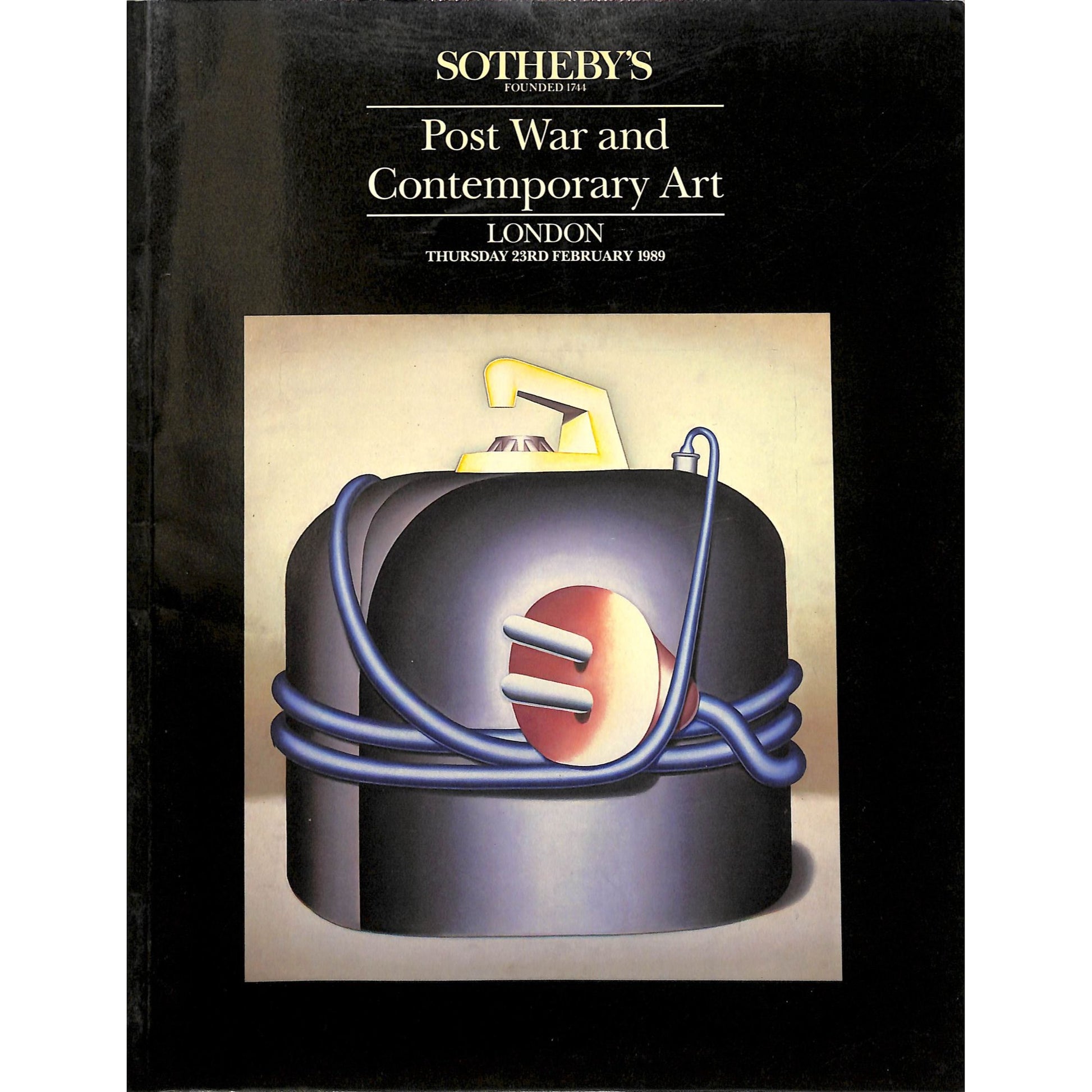 Sotheby’s Post War & Contemporary Art Auction catalog from February 23, 1989, featuring artwork and detailed descriptions of lots for the London event. The softcover catalog showcases artwork on the front and back with thematic focus on post-war and contemporary creations. Useful for collectors, historians, and art enthusiasts.