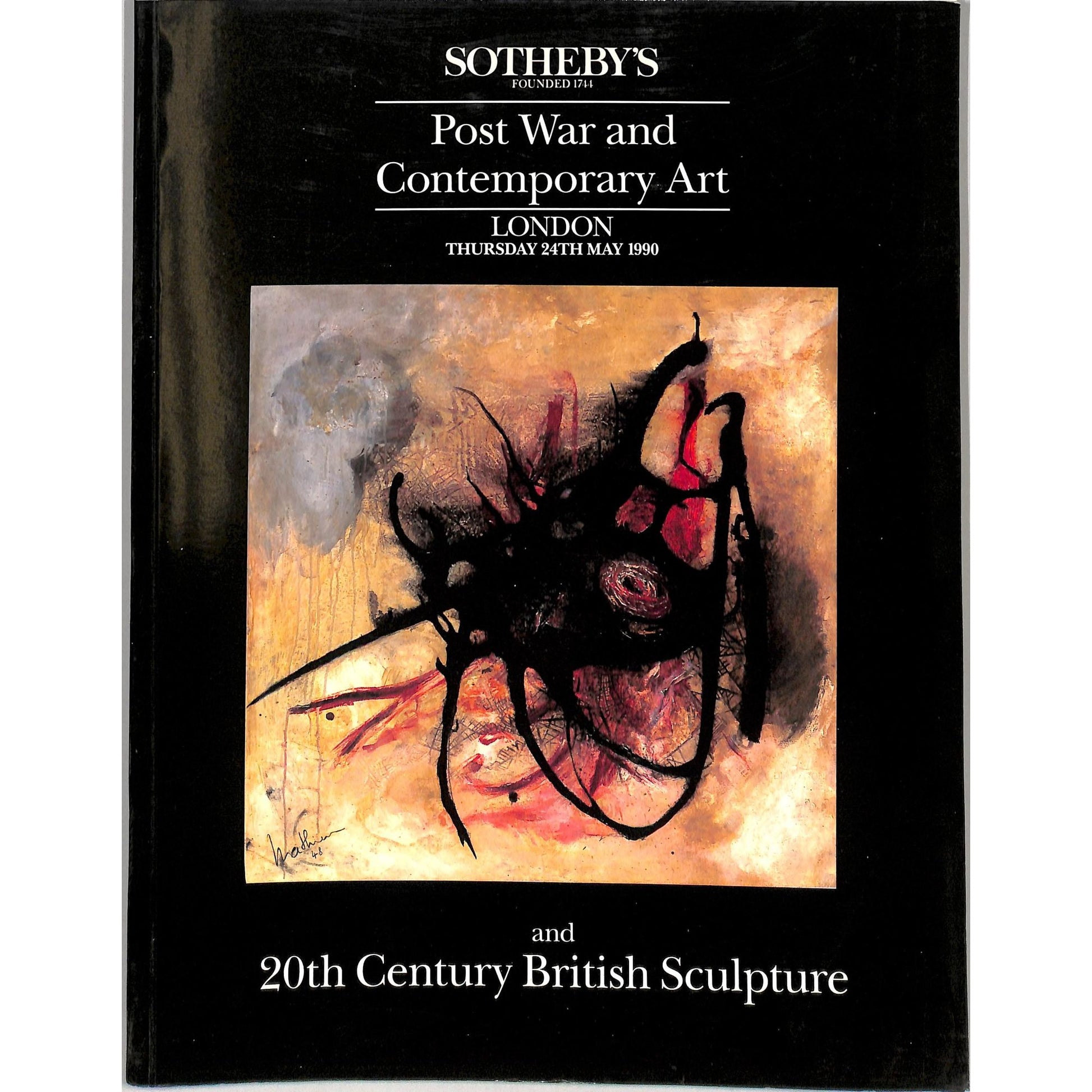 Sotheby's Post War and Contemporary Art Auction catalog, including 20th Century British Sculpture, from May 24, 1990, in London. Features high-quality illustrations and details of auctioned works. Hardcover format with artwork showcased on the covers. Excellent for collectors or enthusiasts of post-war and contemporary art.