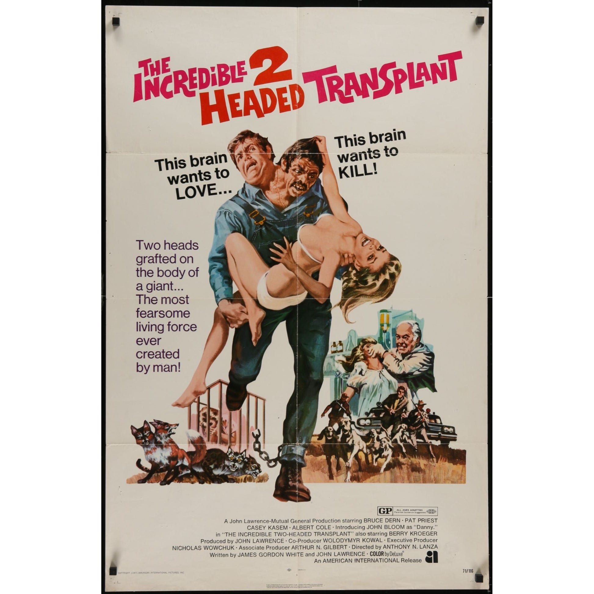 The Incredible 2-Headed Transplant (1971) Original Folded Movie Poster 27x41