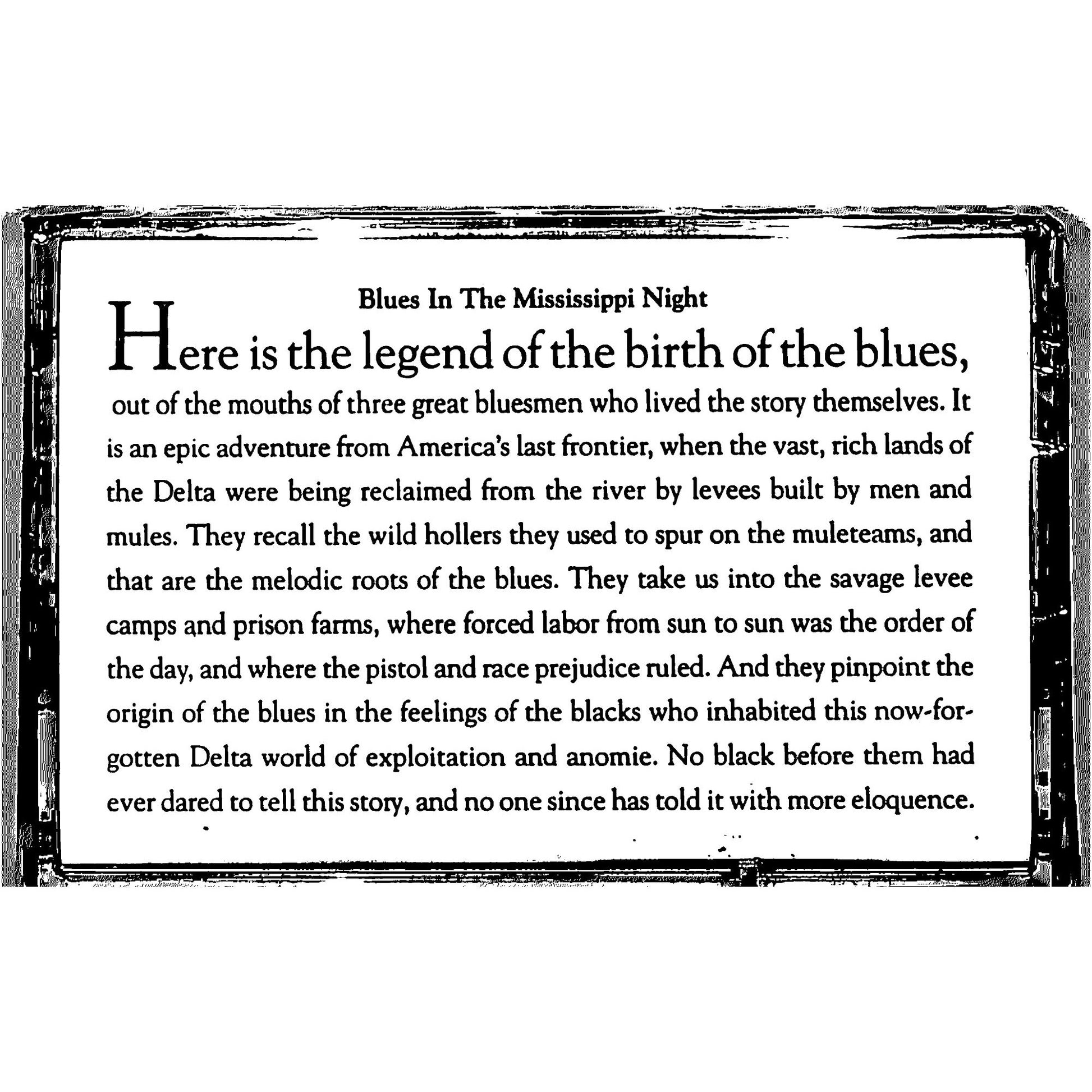 Blues in the Mississippi Night is an album by Muddy Waters, released in 1959. It captures a live performance of Muddy Waters and his band playing at the renowned Newport Jazz Festival in 1958, but the album was released the following year. The album features Waters' iconic electric blues sound, with standout tracks like "Mannish Boy" and "I Got My Brand on You." It showcases his skill as a performer and his ability to bring raw emotion and energy to his music. Blues in the Mississippi Night is an important release in Waters' career and is considered a significant contribution to the blues genre, demonstrating his influence on the development of modern blues and rock.
