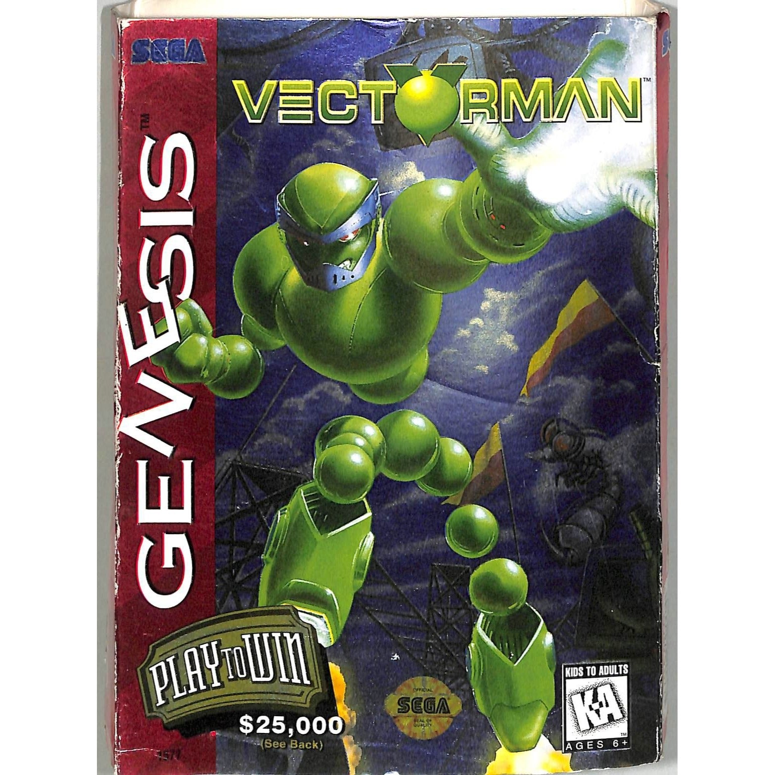 Vectorman is a 1995 side-scrolling platformer developed by BlueSky Software and published by Sega for the Genesis. Set in a post-apocalyptic future, the game follows Vectorman, a robotic hero tasked with saving Earth from the evil Warhead, who plans to destroy the planet. The game features a unique visual style, with characters and environments created using pre-rendered 3D graphics, giving it a distinctive look for its time. Players control Vectorman as he battles enemies, avoids environmental hazards, and collects power-ups across various levels. The gameplay is fast-paced and action-packed, with Vectorman able to transform into different forms to gain new abilities, such as a bomb or a jet. Known for its smooth gameplay, vibrant visuals, and challenging difficulty, Vectorman is considered one of the standout platformers on the Sega Genesis.