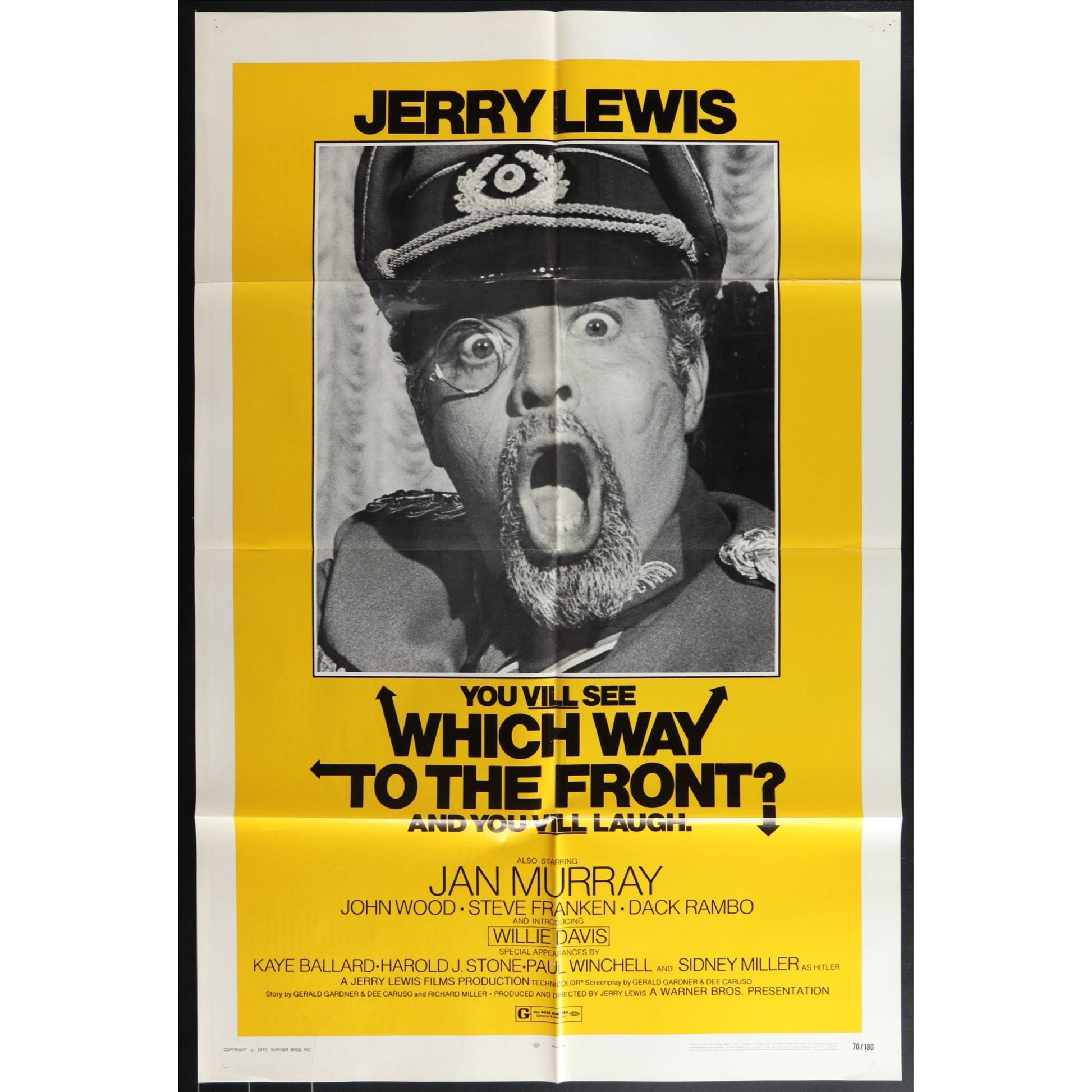 *Which Way to the Front? * (1970) is a satirical World War II comedy directed by and starring Jerry Lewis. The film follows a wealthy, pampered heir named Justin (played by Lewis), who enlists in the military to fight in the war after being excluded from service due to his high social status. The film humorously explores Justin's efforts to prove himself as a soldier, leading to a series of slapstick situations, absurd military antics, and Lewis's signature physical comedy, all while mocking the absurdity of war and class distinctions.